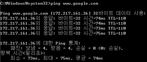 ping www.google.com 명령어를 통해 도메인을 검색한다.