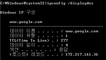 ipconfig /flushdns 명령어를 통해 DNS 캐시 테이블을 삭제한다.