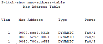 연결 후 아무 통신을 하지 않은 스위치 테이블은 위 그림과 같다.